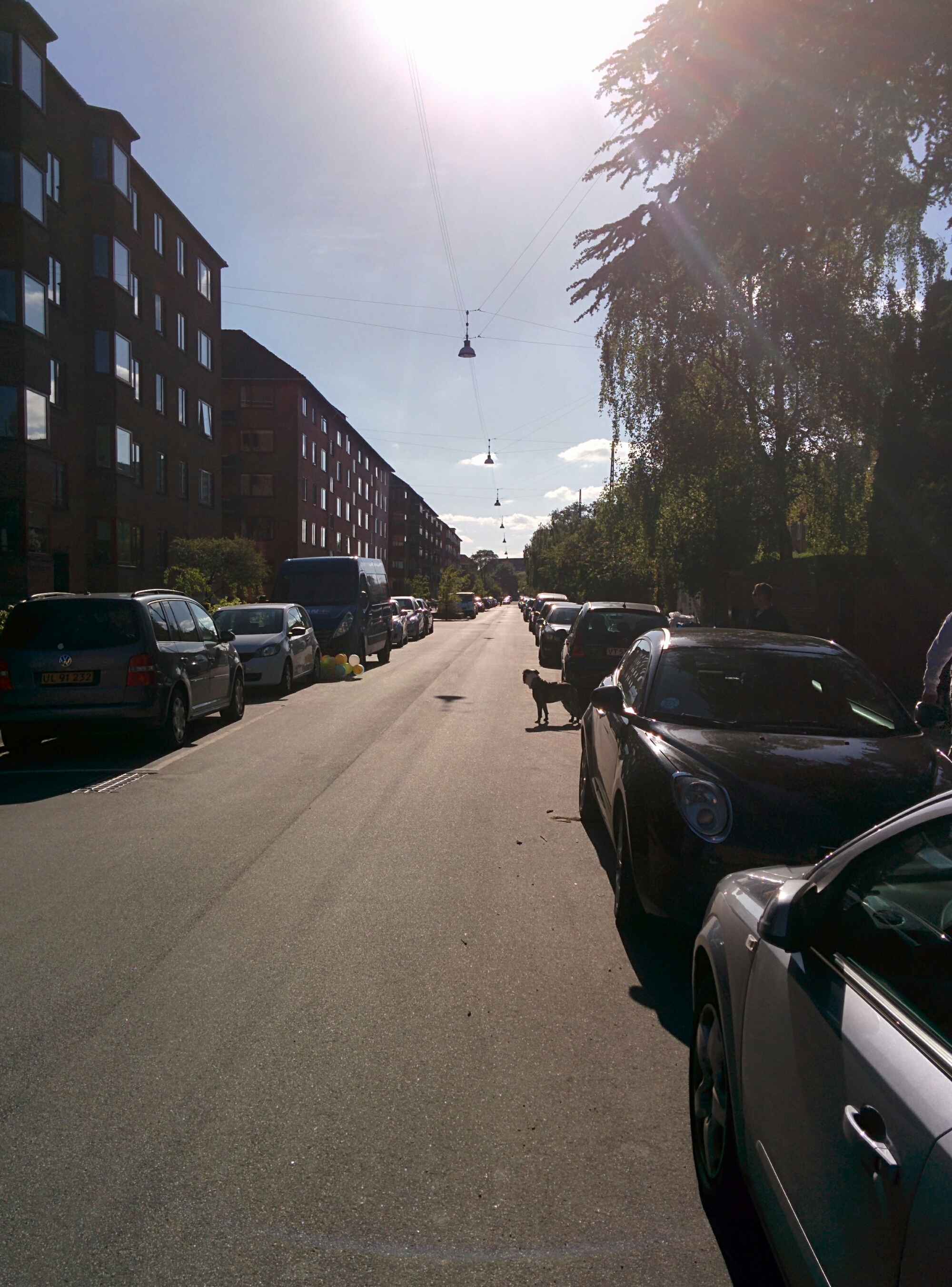 Balloner på fri fod med undrende hund