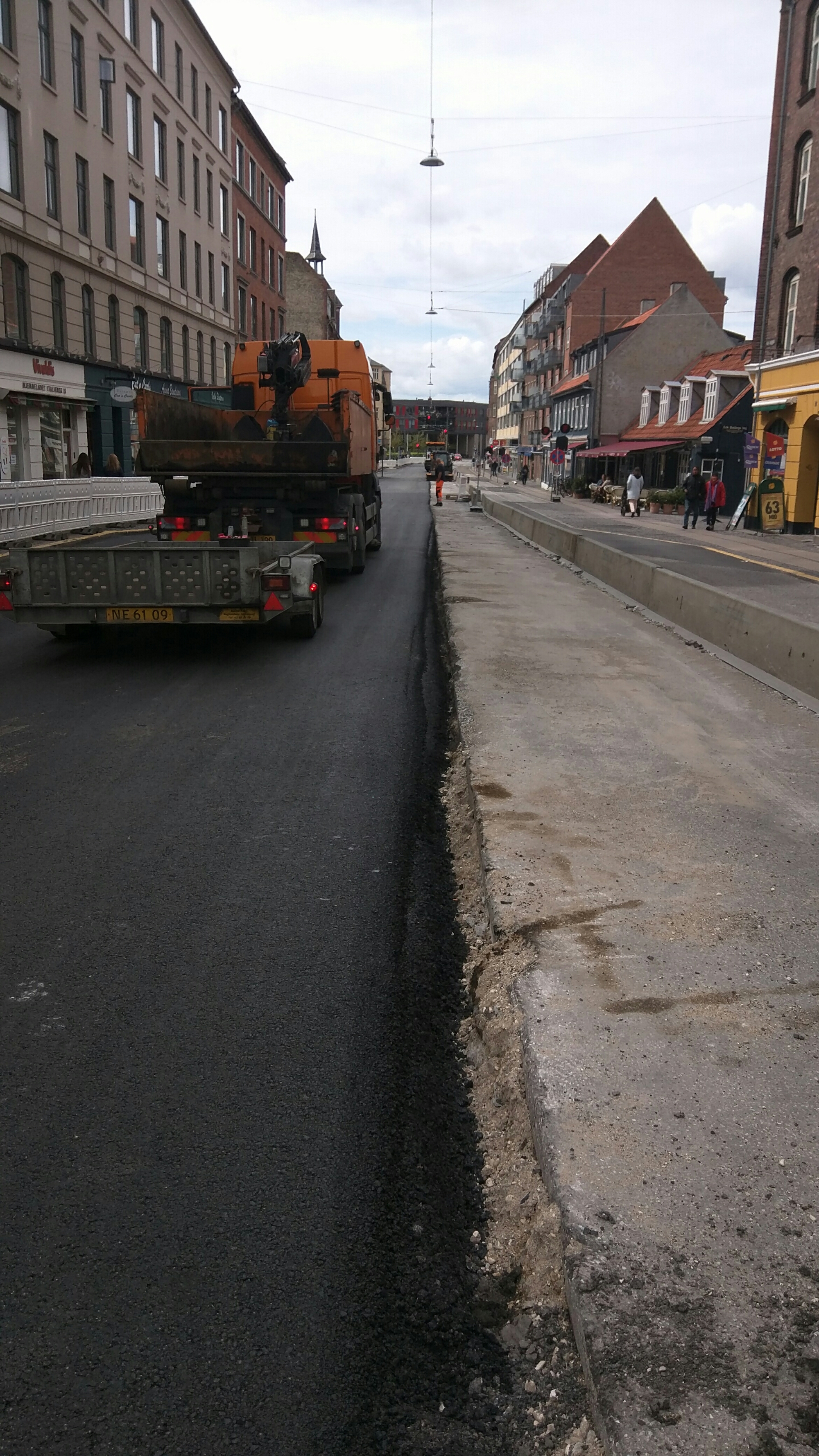 Nu skal de pine død rives helt op. Ligesom på Rådhuspladsen. Ellers ligger den nye asfalt angiveligt ikke ordentligt. Den er ikke glat, nok.