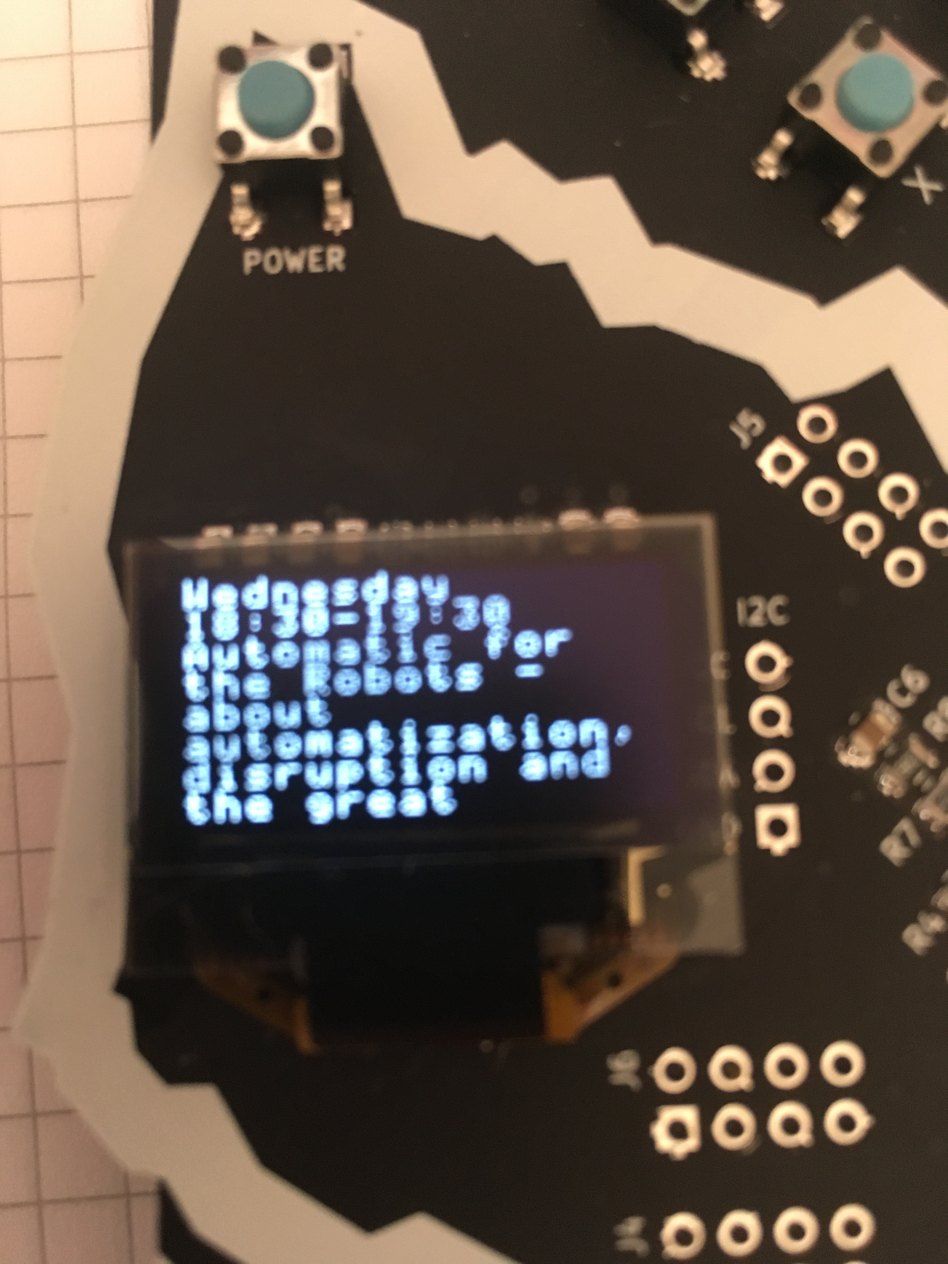 Verdens sejeste festivalbagde designet og fremstillet af nogen af de ærefrygtindgydende dygtige mennesker fra labitat.dk-der er miniusb og boardet kan programmeres men kommer som standard med programmet for bornhack.